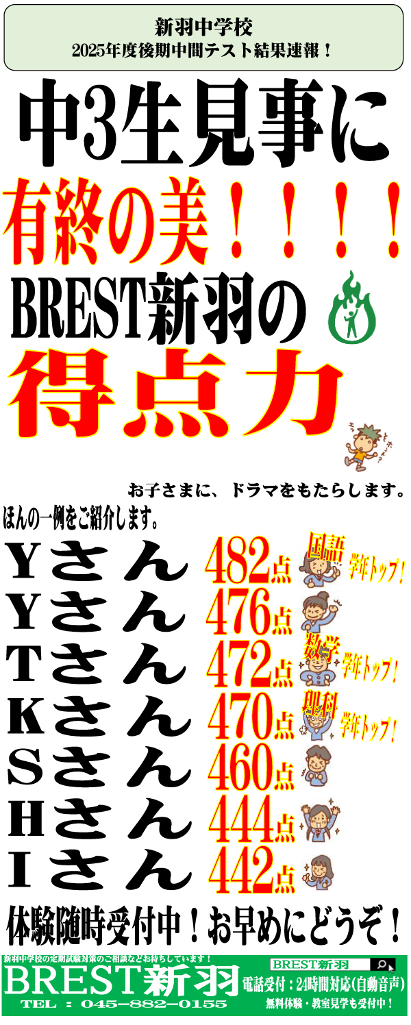BREST新羽 新羽中学校 2025年度後期中間テスト結果速報!