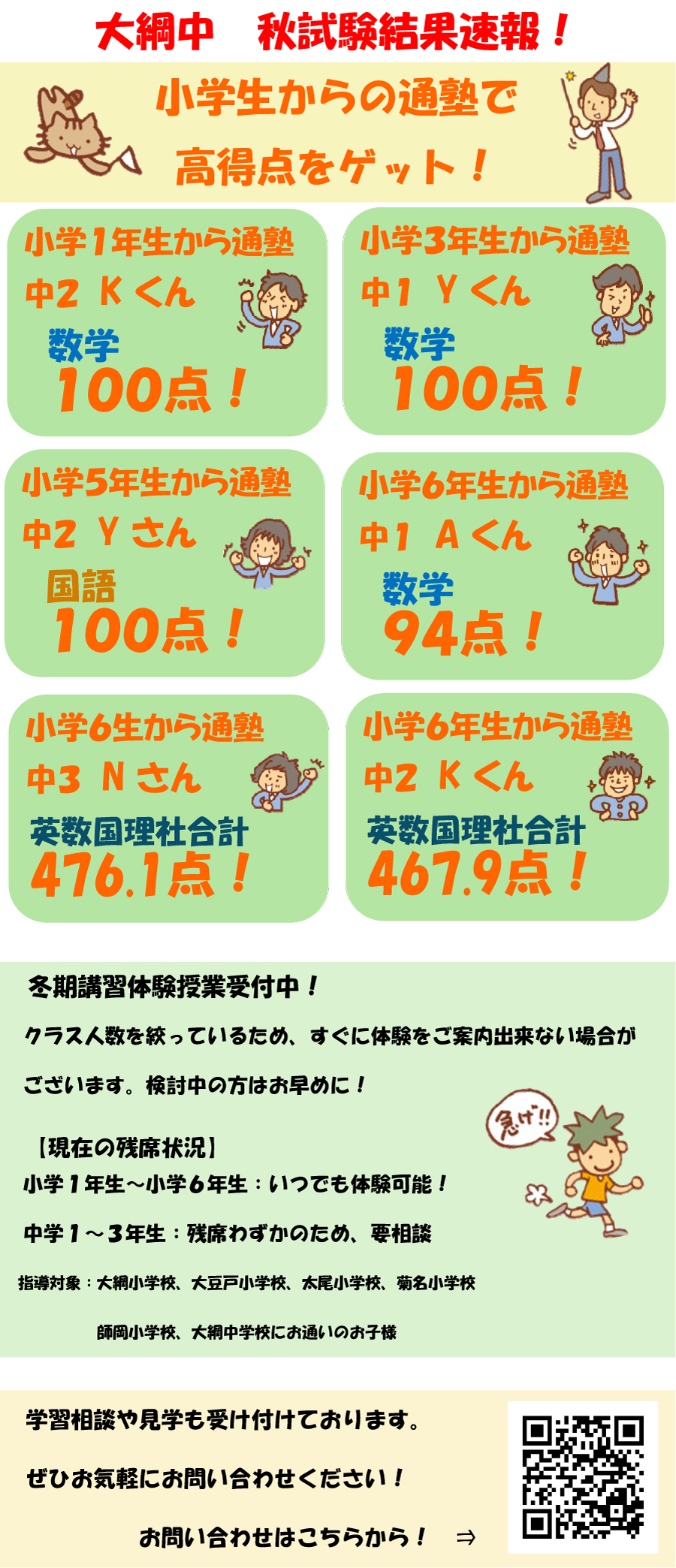 大綱中学校在校生。進学予定者向け学習塾