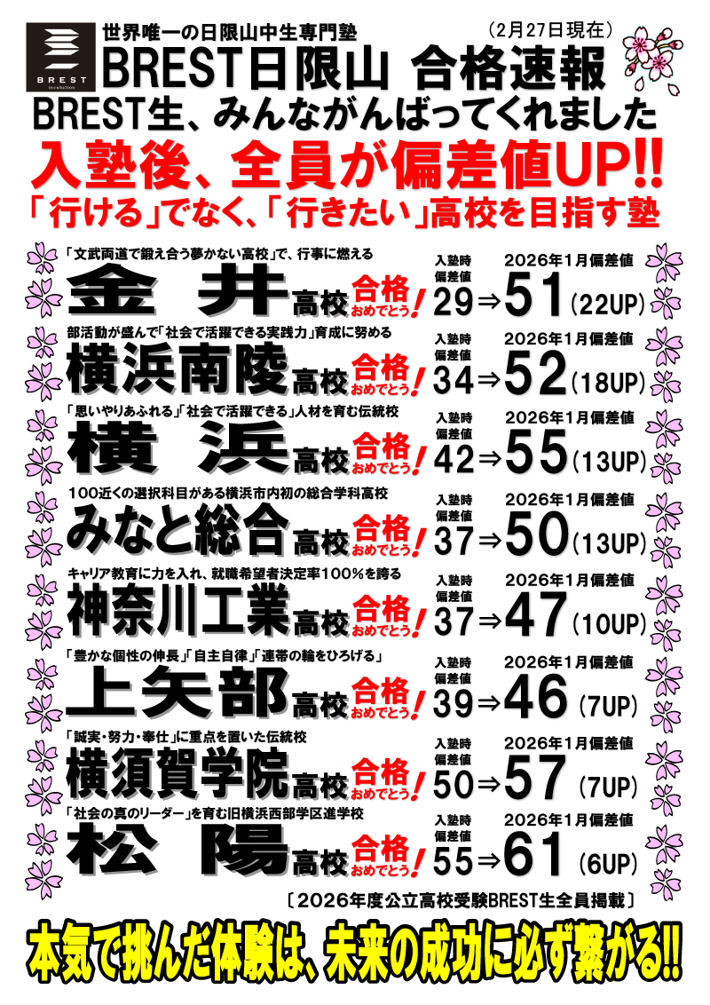 BREST日限山 2026年入試結果速報!!