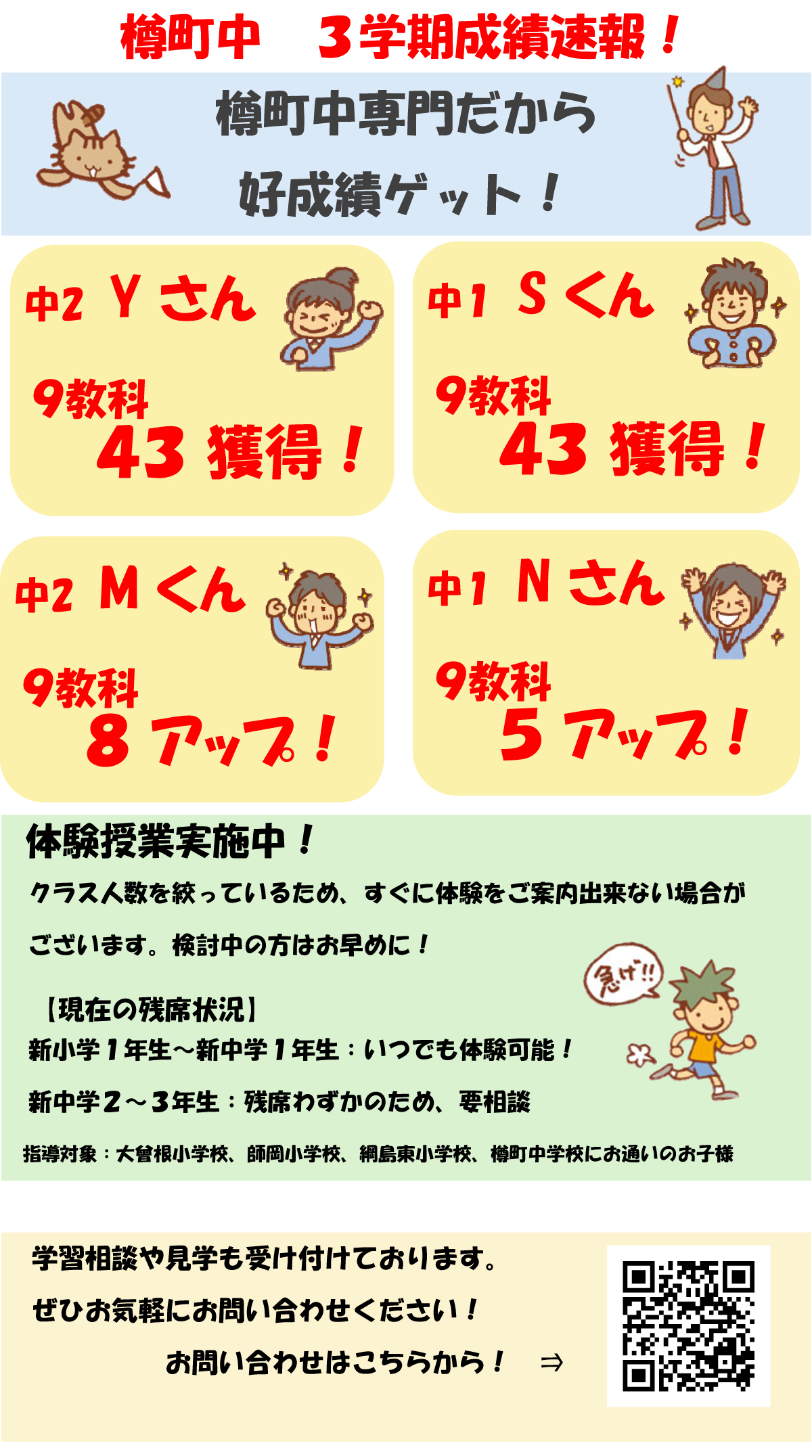 BREST綱島 2025年度樽町中学校3学期内申速報!
