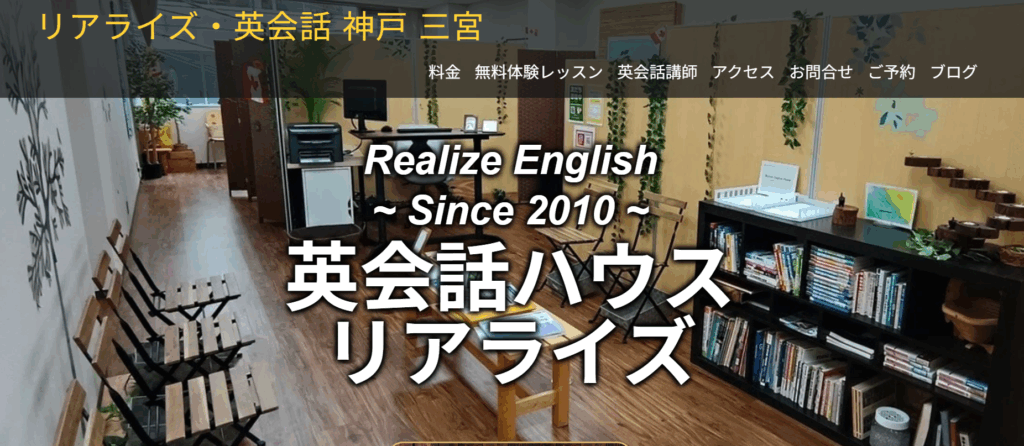 | 英会話ハウス・リアライズ | ネイティブ講師によるマンツーマンレッスン | なし | 無料 | ネイティブ/日本人 | なし | なし | あり | なし | なし | 各線三宮駅徒歩4分 |